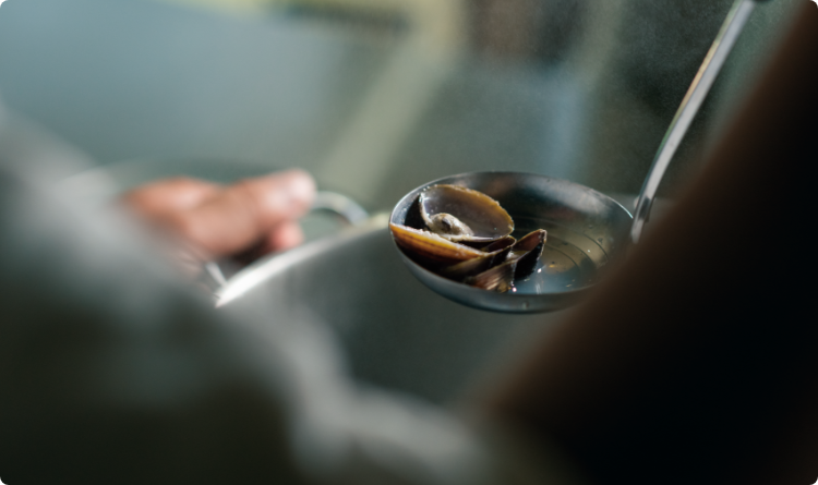 「おすすめの食べ方は?」とよく聞かれますが、イチオシは「しじみチャウダー」です。レシピはシンプルで、アサリやハマグリの代わりにしじみを使ってチャウダーを作ればOK。きっとその美味しさに驚くと思います。ちょっと手間がかかりますが、ぜひ一度試して頂きたい一品です。もっと手軽にということであれば、やっぱり「しじみの味噌汁」でしょう。日本の味の最高傑作の一つだと思っています。昔から嶋田家では水の状態からしじみを煮立てて、味噌汁を作るのが流儀。肝臓にいいと言われるオルニチンが豊富です。お酒を飲んだ翌日ひと口すすれば、体に沁み渡ること間違いなし。